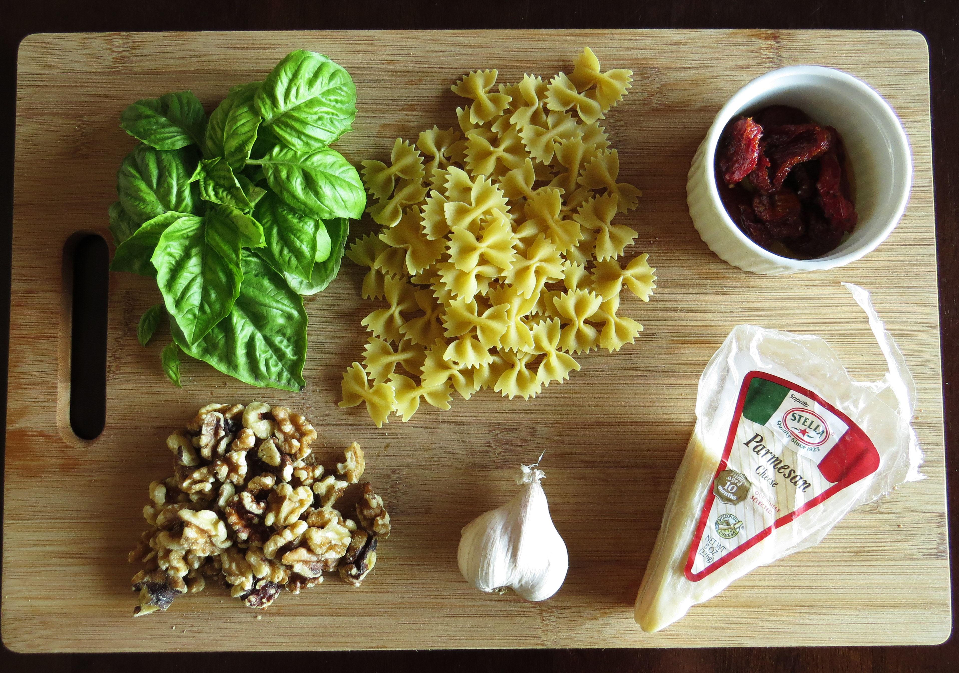 Walnut Basil Pesto with Bowties and Sun-Dried Tomatoes